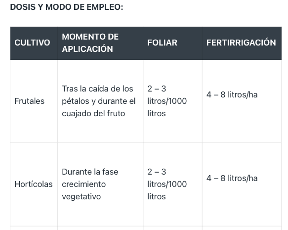 Fertilizante con Microelementos que inducen la síntesis de moléculas orgánicas implicadas en el crecimiento y desarrollo del cultivo.